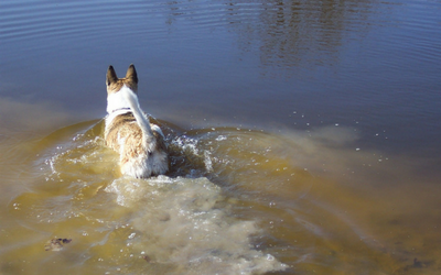 A dog becomes infected with Giardia when it swallows the cyst stage of the parasite. In susceptible dogs, once the cyst passes into the dog's intestines, it transforms into the trophozoite and attaches to the intestinal wall to feed. If sufficient numbers are present, clinical signs of damage to the intestinal wall will develop.