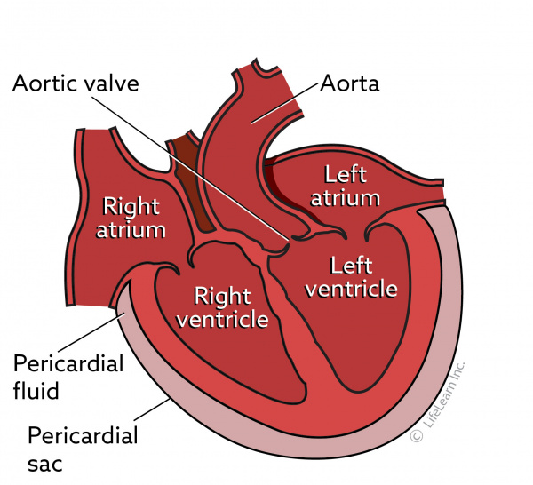 As the pericardial sac fills with excessive fluid, the pressure within the pericardial sac rises. Eventually, this pressure may meet or exceed the pressure that is present within the heart. At this point, the ventricles of the heart lose their ability to fill effectively, creating a condition known as cardiac tamponade. Cardiac tamponade interferes with the heart's ability to move blood, resulting in right-sided congestive heart failure, low blood pressure, and poor circulation to the heart and other organs.