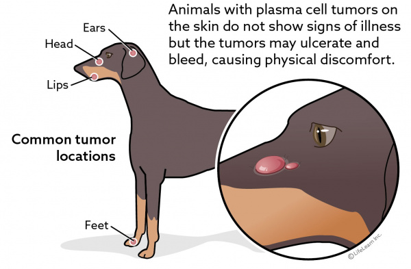 Plasma cell tumors of the skin or mouth are usually benign (non-cancerous). They form small tumors and can grow rapidly. These types of tumors are very rare in cats.