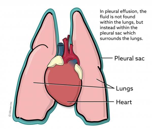 Pleural effusion is the abnormal accumulation of fluid in the chest cavity. Fluid accumulates in the pleural sac, not the lungs, so the lungs are essentially floating in a chest full of fluid. This fluid occupies space within the chest, so the lungs cannot expand as fully as they should.