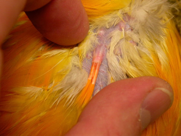 Lovebirds and canaries are the most commonly affected species, but parakeets (budgerigars) and cockatiels can also be affected. Sometimes a tentative diagnosis is made based on the location and intensity of the itching, as the bird may have pulled out the evidence and no follicles are seen with multiple feathers in them.