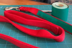 - Trimming lengthwise with a utility knife, carefully cut the fabric tape narrower than the leash or collar width.