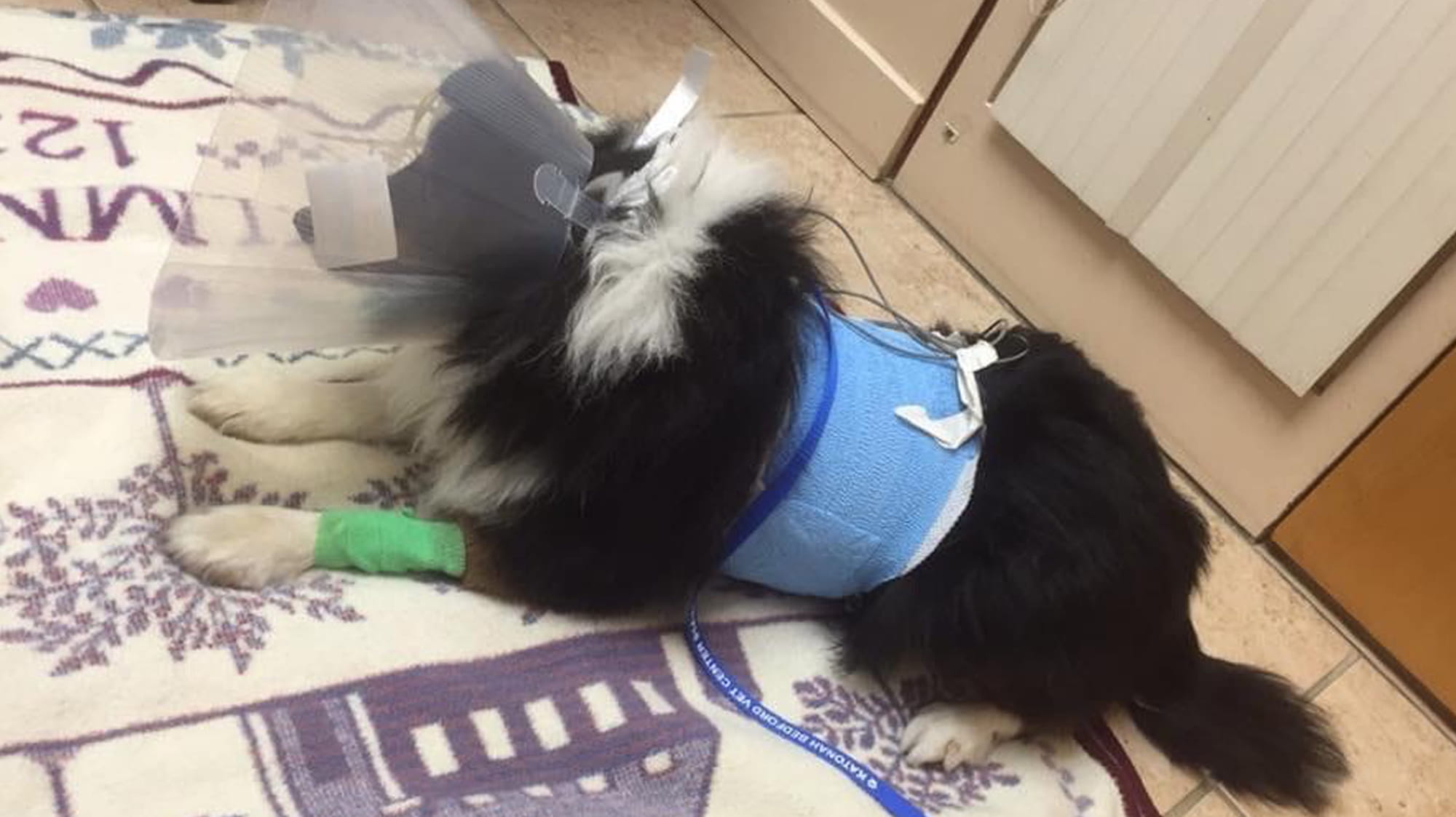 When Courtney got home from work that evening, she found shredded plastic all over the floor, and the majority of the cookies gone. Duffy had ingested two dozen chocolate chip cookies. He experienced vomiting and diarrhea overnight and by the next morning, he could no longer stand. The family decided to bring him to VCA Katonah Bedford Veterinary Center in Bedford Hills, NY.